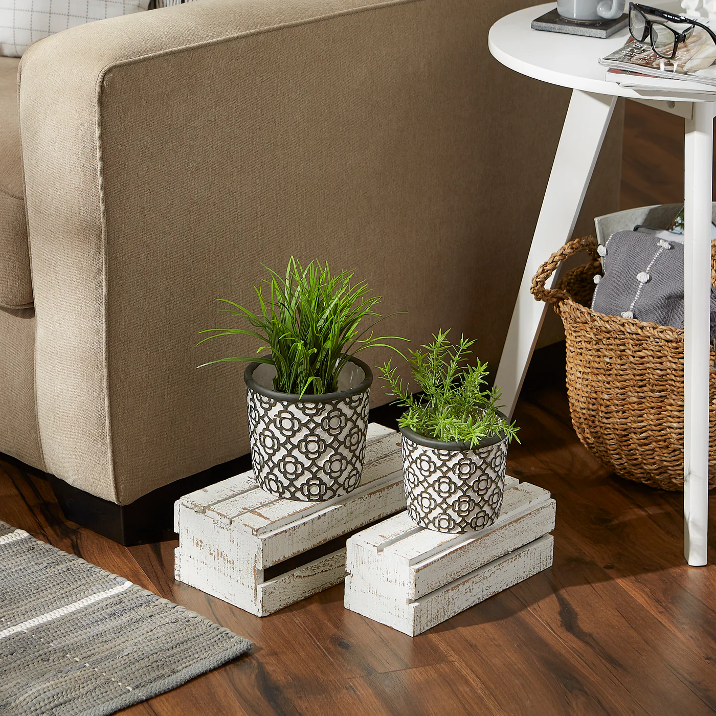 Home > Set of 2 Dark Gray Lattice Cement Flower Pots - Stylish Home Decor for Indoor and Outdoor Use